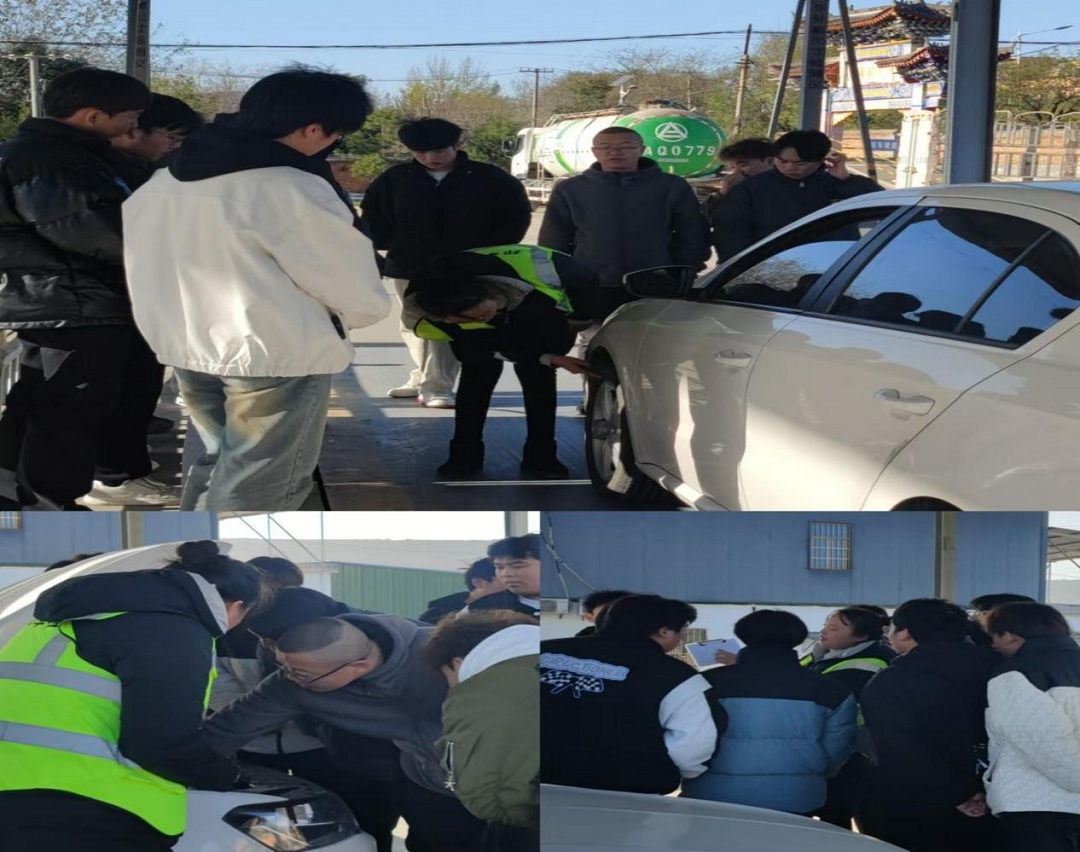 随后,活动进入高潮阶段,学生们在专业人员的指导下,亲身体验了汽车性能与检测的各个环节。从发动机五大系统的技术检查,到车辆雨密性测试、前照灯校验、噪声测量等现代化检测手段,再到底盘与车身各部件的技术状态评估,学生们不仅将书本知识与实践操作紧密结合,还深入了解了汽车检测与维修的严谨与细致。